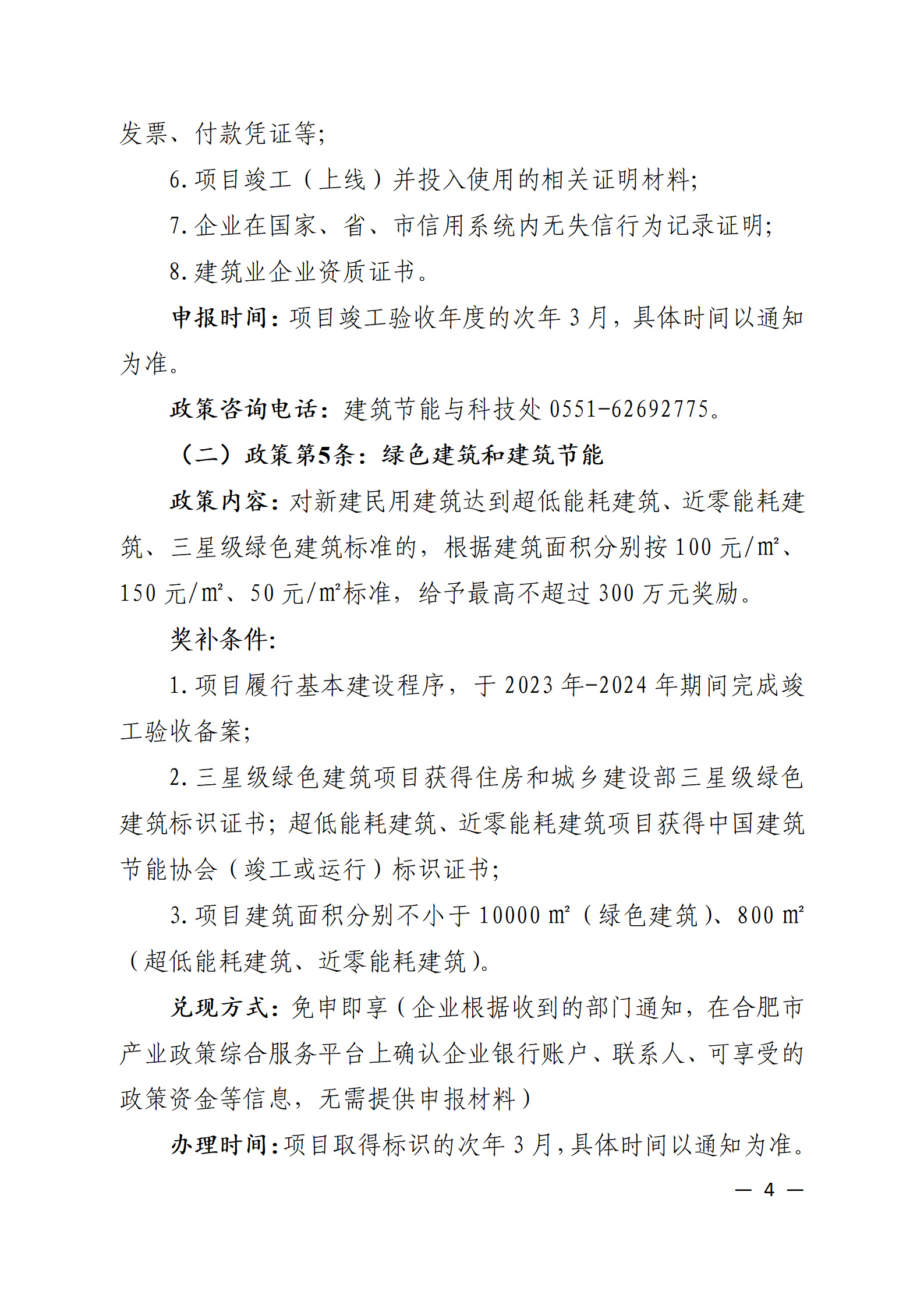 詳見《關于印發〈合肥市促進經濟發展若干政策實施細則(城鄉建設部分)〉的通知》(合建〔2023〕50號,附件1),申報材料紙質版請附封面(附件2)膠裝。