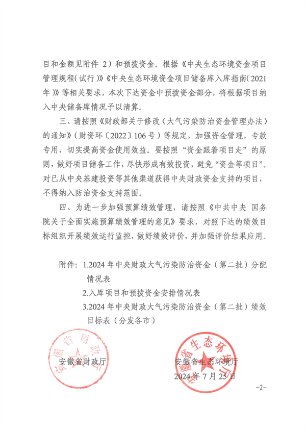摘要:8月5日,安徽省生態環境廳官方網站發布安徽省財政廳 安徽省生態環境廳關于下達2024年中央財政大氣污染防治資金(第二批)的通知,本次下達資金38057萬元,用于促進大氣質量改善,支持開展減污降碳等方面相關工作。